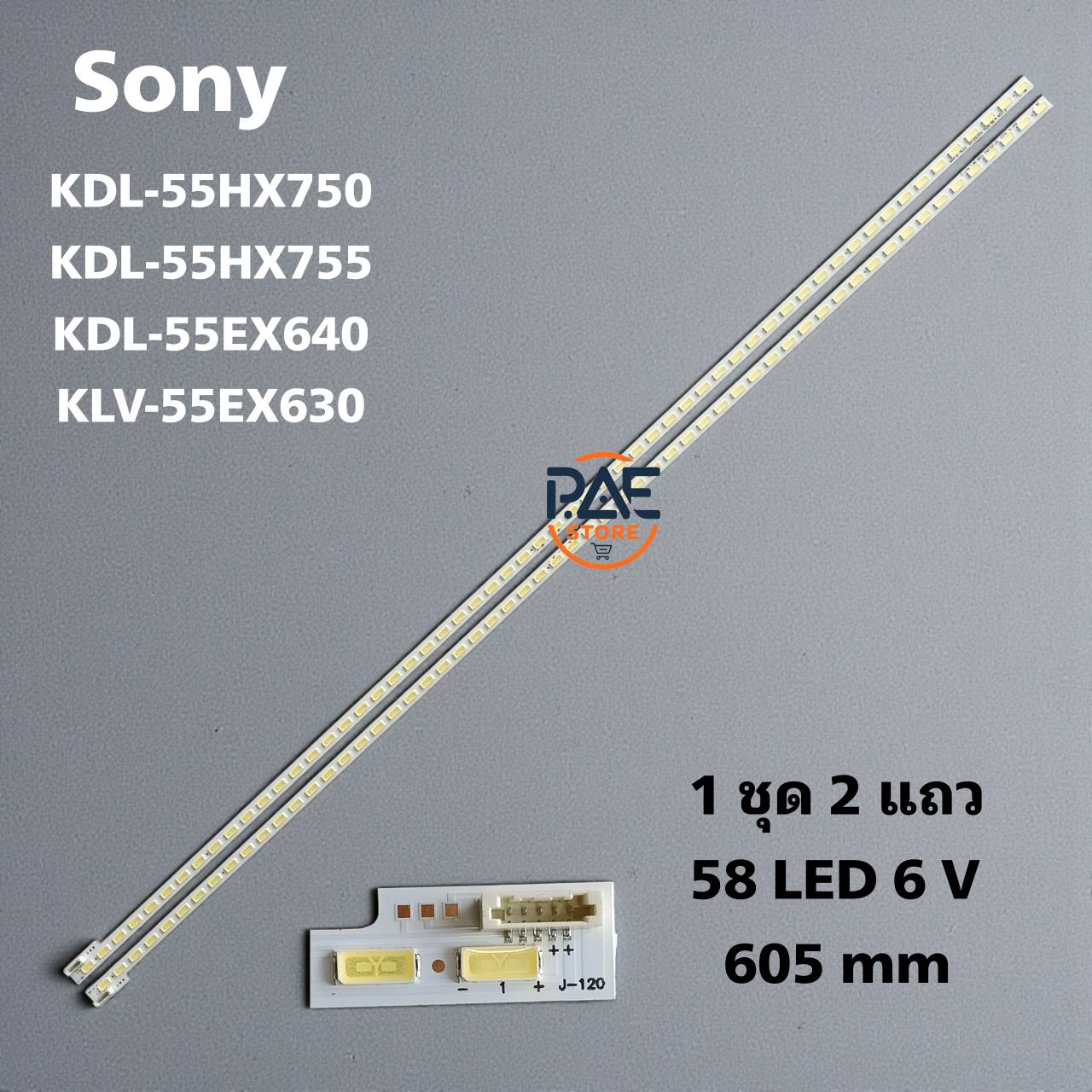0001748 #หลอดแบล็คไลท์ทีวีโซนี่ Backlight TV Sony รุ่น KDL-55HX750 : KDL-55HX755 : KDL-55EX640 : KLV-55EX630 1set 2 แถว 58 LED 6 V ยาว 605 mm